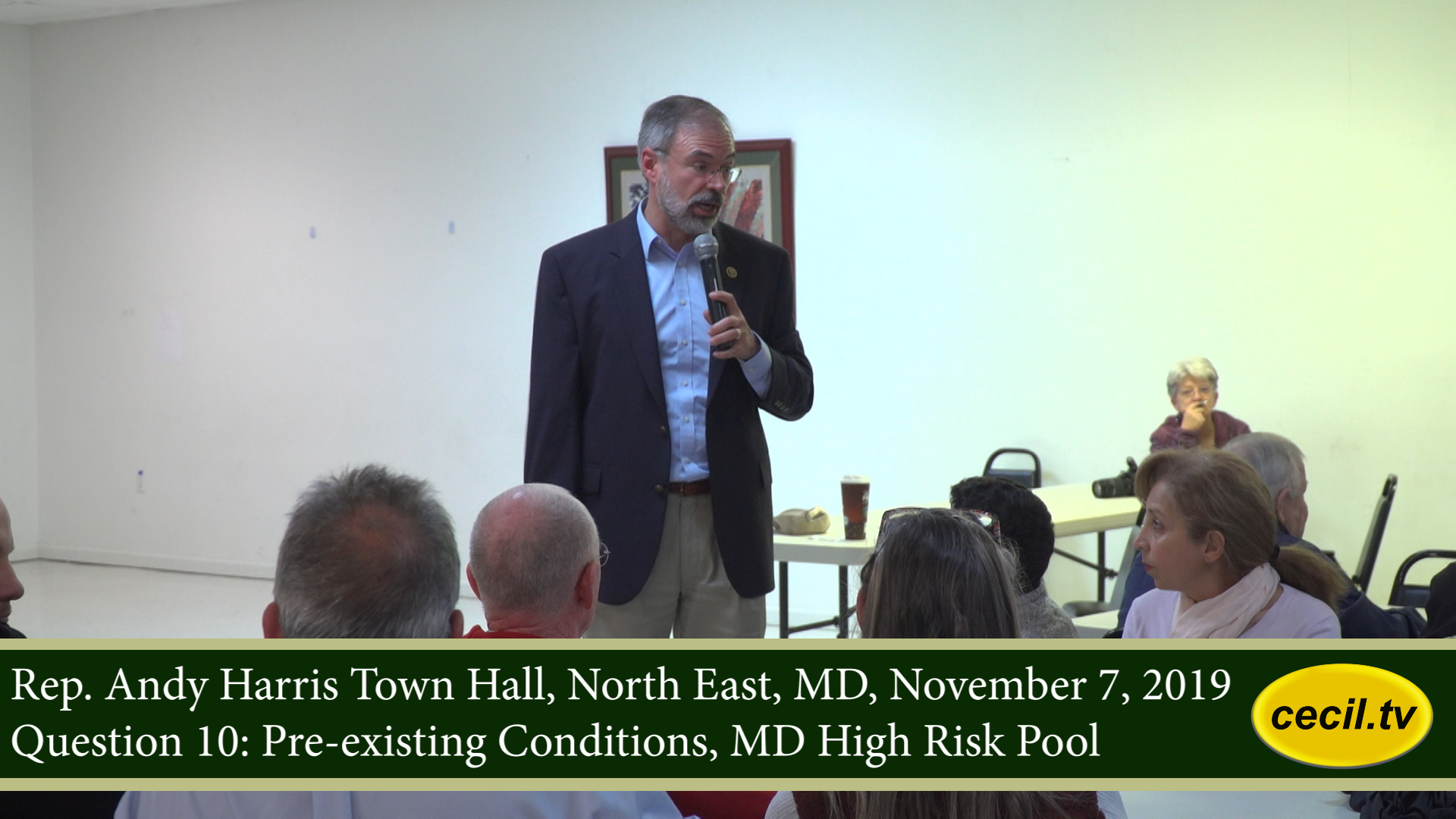 Rep. Andy Harris Town Hall, North East, MD, November 7, 2019 Question 10: Pre-existing Conditions, MD High Risk Pool Read More...Cecil TV | Rep. Andy Harris Town Hall Q&A #11 | November 13, 2019